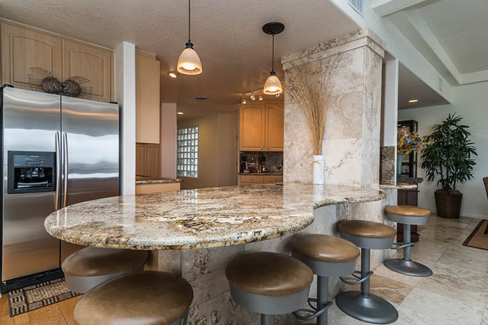 LOWEST MAINTENCE FEES ON THE BEACH FOR A GULF FRONT LUXURY HOME! Your beachfront oasis awaits you on the pristine beaches of north Treasure Island at the Marquesa. Beautifully landscaped grounds on a large tucked away coastline parcel awaits. This stunning 3 bedroom with a 4th bedroom option and 3.5 bath open floor plan condo is perfect for your beach lifestyle and every day living. A well-appointed kitchen with spacious cabinetry, enormous walk in pantry, stainless appliances and granite counter tops make it a true Chef's kitchen with a view.